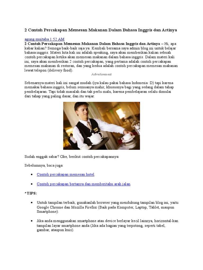 2 Contoh Percakapan Memesan Makanan Dalam Bahasa Inggris Sumber : www.scribd.com